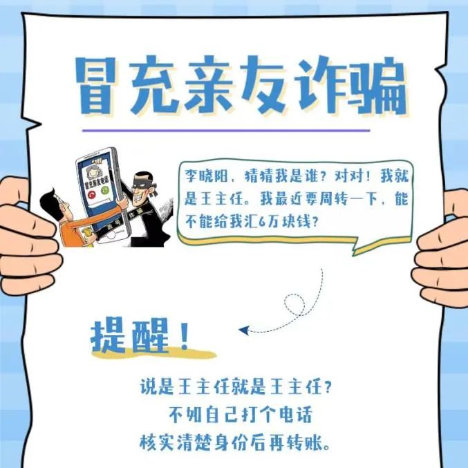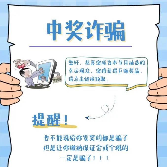 九大诈骗套路,警方教你识破电诈的“定海神针20条铁律” 发表于:2024-02-06 来源:防骗每日电讯 教你识破网络诈骗套路的“定海神针电信诈骗手段01公检法电话要求你转账汇款的都是诈骗;02给你宣传做兼职刷单返现的都是诈骗;03叫你汇款到“安全账户”的都是诈骗;04网上办理贷款需要你先打钱的都是诈骗;05叫你开通网上银行接受检查的都是诈骗;06高薪招聘要求先交费交保证金的都是诈骗;07电话或网上通知欠费交费或换卡的都是诈骗;08自称领导(老板)等熟人要求汇款的都是诈骗;09通知“家属”出事要求汇款的都是诈骗;10威胁恐吓要求转账汇款的都是诈骗;11中奖、退款、领取补贴要你先交钱的都是诈骗;12自称客服给你退赔要求登录新的网站和扫描二维码的都是诈骗;13电话中索要个人和银行卡信息的都是诈骗;14网上交友推荐投资(要钱)的都是诈骗;15索要个人信息、卡号、验证码的都是诈骗;16网上聊天借钱转账但不和你视频的都是诈骗;17网络要求裸聊的就是诈骗;18相关部门要给你退税、补贴的都是诈骗;19投资理财(平台)高回报率的都是诈骗;20网络赌博是违法更是诈骗! 上一篇:春节防诈骗指南 下一篇:春节防诈骗指南